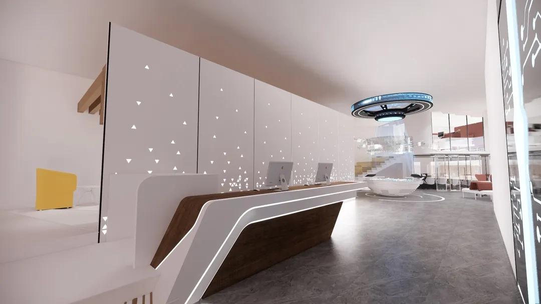 色彩在深圳裝飾公司室內(nèi)裝飾空間中的應(yīng)用。每種顏色都會(huì)使我們有不同的感覺(jué)。技術(shù)藍(lán)色和未來(lái)白色主要用于顏色,未來(lái)白色用于墻壁和定制桌子,技術(shù)藍(lán)色用于某些VR和全息設(shè)備,淺木地板和灰色混凝土用于地板。地板的顏色比辦公家具的顏色深。主要帶有一些睿智而沉穩(wěn)的語(yǔ)氣。