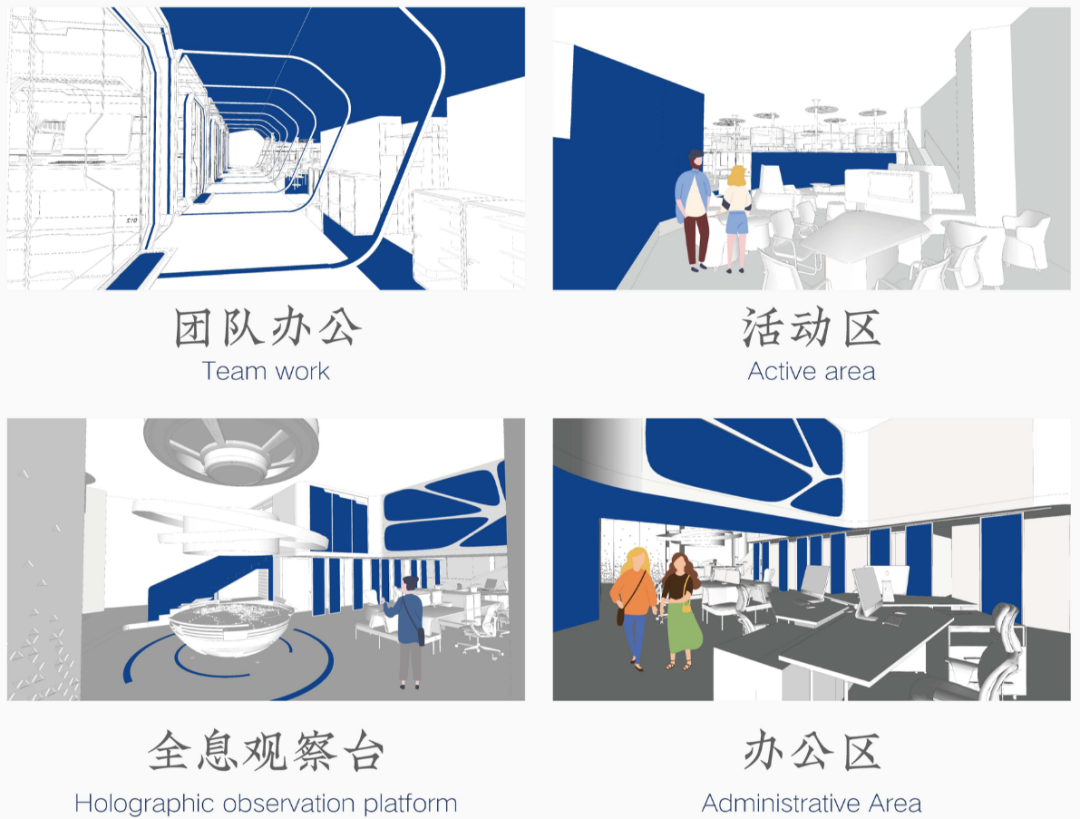 監(jiān)視層:監(jiān)視層是指爬高并向遠(yuǎn)處看,而監(jiān)視層是整個(gè)空間的高度。觀測(cè)層由觀測(cè)平臺(tái)和走道組成,走道由多列支撐。 out望臺(tái)是空中漫步的延伸,員工可以通過(guò)它觀察下面的休閑辦公區(qū)。
