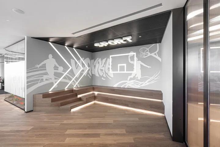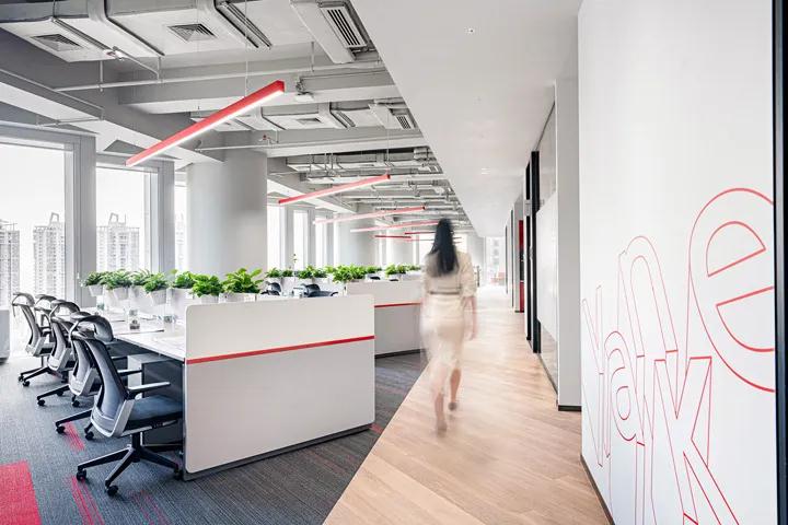 設(shè)計(jì)師還為員工增加了其他有趣的空間元素:每個(gè)員工擁有的智能儲(chǔ)物柜可以通過(guò)手機(jī)打開(kāi);數(shù)字板/墻可以顯示天氣預(yù)報(bào);通過(guò)空氣質(zhì)量(PM2.5測(cè)量)全面監(jiān)控辦公室空間;茶室,健身角和配套淋浴間,為女性員工提供咖啡,茶,小吃,自助午餐,飲用水設(shè)備和護(hù)理室,共同創(chuàng)造了面向未來(lái)的靈活工作空間,為員工提供舒適的福利;诳沙掷m(xù)發(fā)展的理念,萬(wàn)科濱海云辦公空間獲得了“ LEED金牌”和“國(guó)家綠色三星”綠色建筑兩項(xiàng)認(rèn)證,這在深圳是罕見(jiàn)的。辦公裝修空間中的“迷你圖書館”具有無(wú)限的學(xué)習(xí),無(wú)限的思考,閱讀和創(chuàng)造力。中央樓梯的開(kāi)放式設(shè)計(jì)將空間上下連接。除了工作,您還可以適度地鍛煉身心。有相當(dāng)數(shù)量的會(huì)議空間,它們的單位大小各不相同,從而創(chuàng)造了更加靈活和協(xié)作的通信效率。陽(yáng)光透過(guò)落地窗射出陽(yáng)光,每天為辦公室區(qū)域增添活力,與此同時(shí),我們的設(shè)計(jì)師受到萬(wàn)科文化的啟發(fā),并為每層地板設(shè)計(jì)獨(dú)特的圖案和顏色,因此具有代表性,營(yíng)造出充滿體育活力,人文關(guān)懷和開(kāi)放式創(chuàng)新的萬(wàn)科精神,使公司訪客真正體驗(yàn)傳統(tǒng)企業(yè)的動(dòng)態(tài)轉(zhuǎn)型。